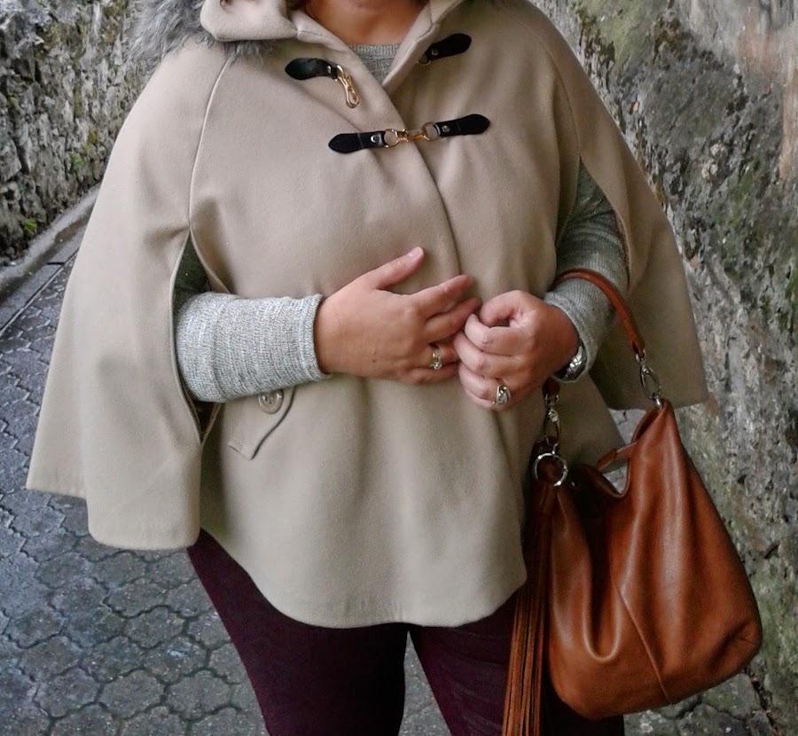 El look que os muestro hoy tiene como pieza principal una capa de paño corta, con capucha que me regaló mi hermana Natalia por Reyes el año pasado.