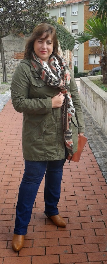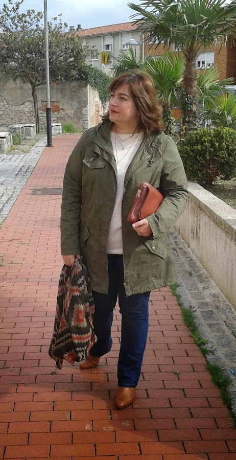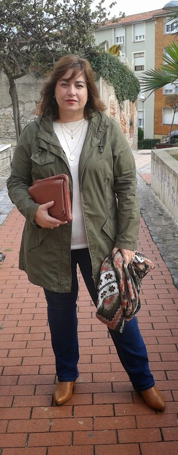 Cuando hablamos de los colores de la temporada vimos que el caqui era uno de los colores que más ibamos a encontrar en las tiendas, hoy voy a mostraros un look cuya prenda principal es una parka de color caqui.