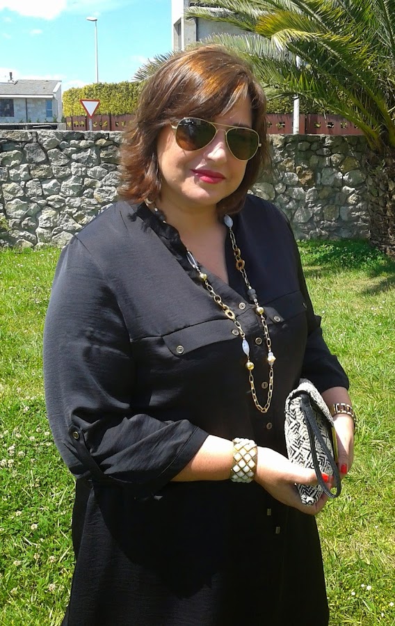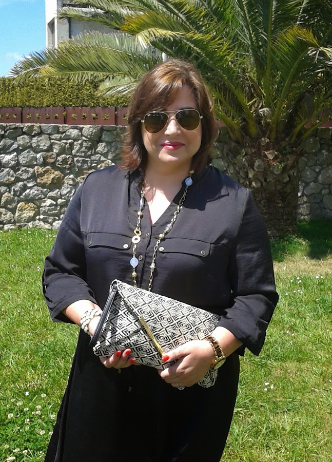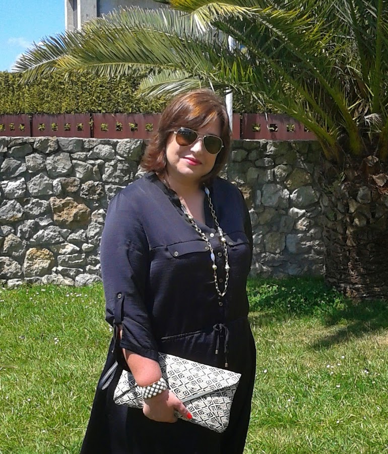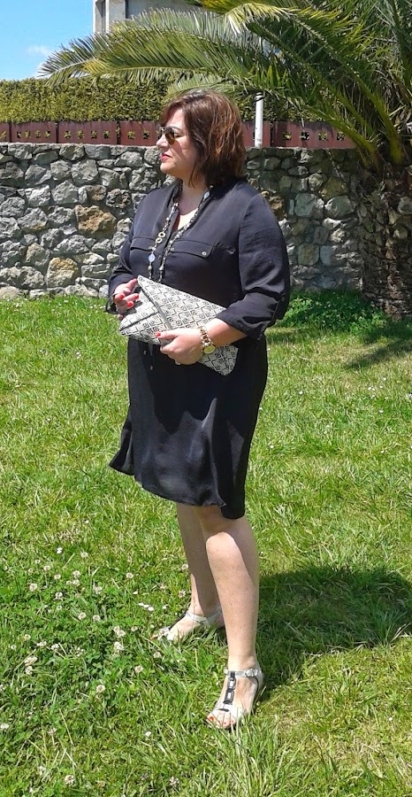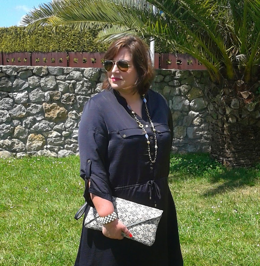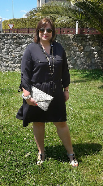 Desde hace un par de años tenía ganas de un vestido camisero negro, pero no había encontrado ninguno que me llenase; así que cuando vi en Primark el vestido que llevo hoy puesto ni me lo pensé. Es del mismo tejido que el mono que llevé a la Comunión y que podéis ver aquí.