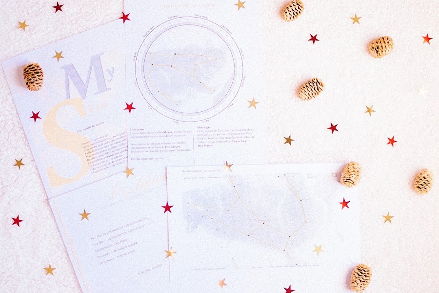 ¡Ha nacido una estrella y se llama Mi maldita dulzura! Sí, como lees, y es todo gracias a Etoilez-Moi, una empresa francesa que se dedica a bautizar estrellas con el nombre y la fecha que nosotros deseemos, además de elegir también la constelación para que así pueda estar lo más personalizada posible. Lo realizan a través del International Celestial Repertory, registro oficial de identificación de estrellas, por lo que te garantizan que esa estrella es única (sólo tuya). Creo que es un regalo súper especial y original (en su web tienen un montón de packs para cumpleaños, bautizos, San Valentín...), perfecto para estas Navidades porque ¿a quién no le gustaría brillar en el universo a través de una estrella? A mí me han enviado el pack Estrella fugaz en su versión económica y recibí directamente los documentos al email: el certificado de registro, el mapa celeste, la ficha de la constelación y un precioso poema. ¿Sencillo y cómodo, verdad? ¡Pues anímate y regálasela a tu persona más especial!