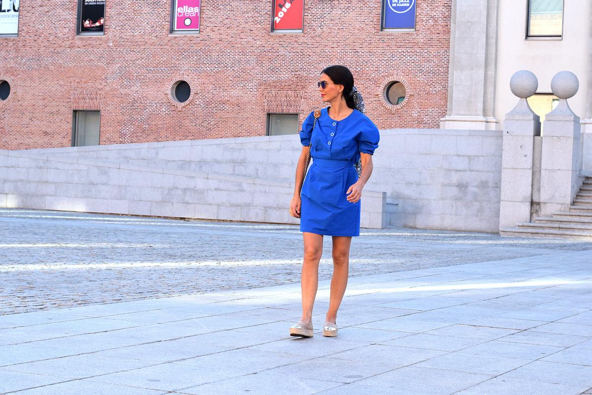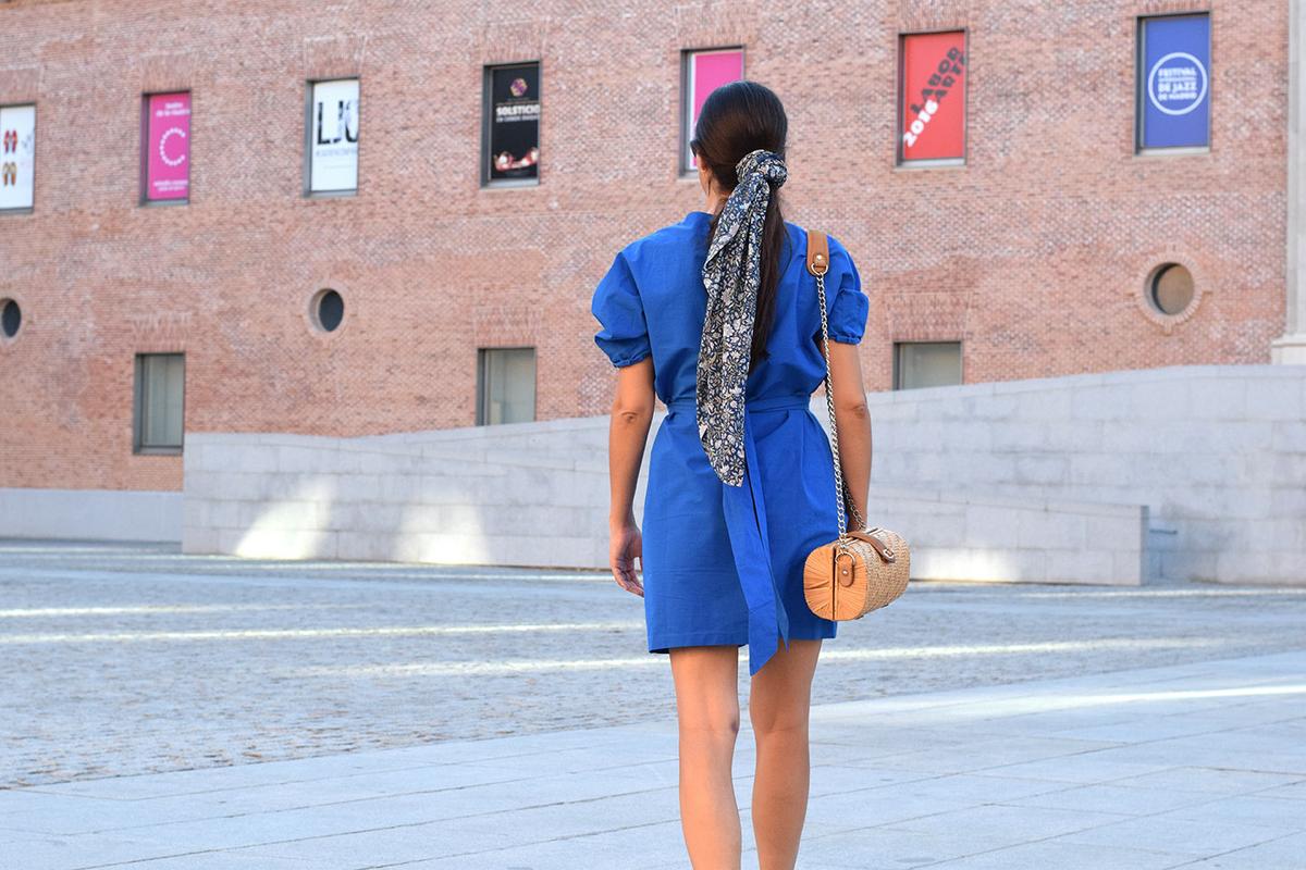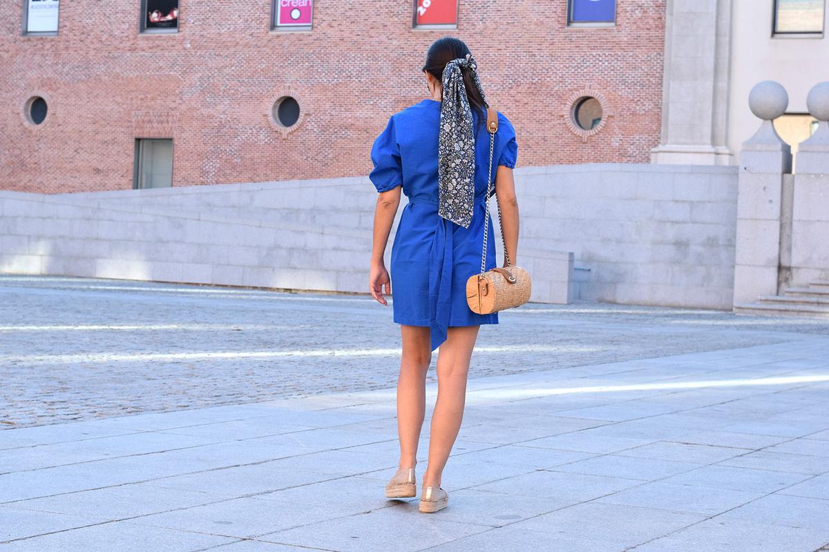 Para el look de hoy he elegido este vestido de las rebajas de Mango. Al principio el color me echó un poco para atrás porque me recuerda al de los monos de los mecánicos pero al mismo tiempo es muy intenso y alegre así que me lo llevé. Me gustan sus botones con un rollo retro y las mangas abullonadas. Lo he combinado con unas alpargatas doradas con plataforma y mi bolso estrella de cada verano (es de Zara de hace mil temporadas pero me encanta y pega con todo). Para darle un toque más chic he anudado un pañuelo de seda a la coleta. ¿Qué os parece?