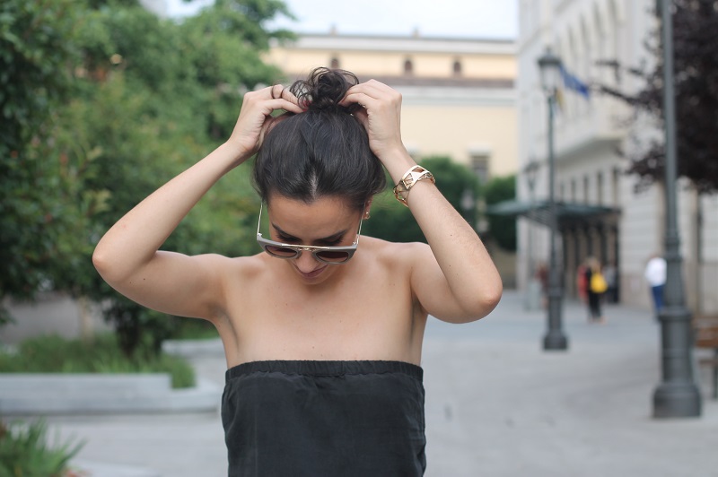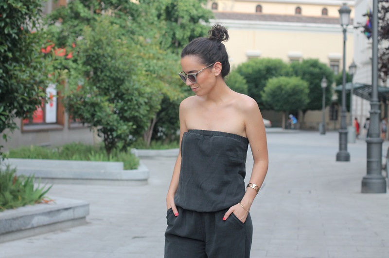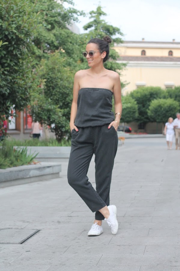 Hace unos meses descubrí en mi anterior hogar una de estas cajas, de las más recientes cerradas, y no sabéis que alegría me dio recuperar cositas que daba por perdidas o ni siquiera recordaba! Resulta que estaba este mono negro con corte de palabra de honor, un escote que siempre me gustó pero con el que considero hay que tener mucho cuidado al combinar o llevar.