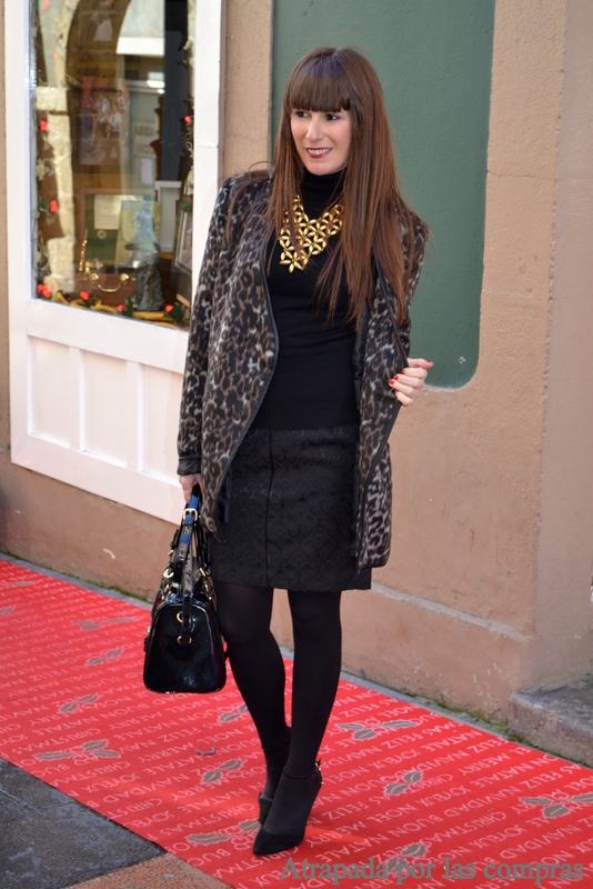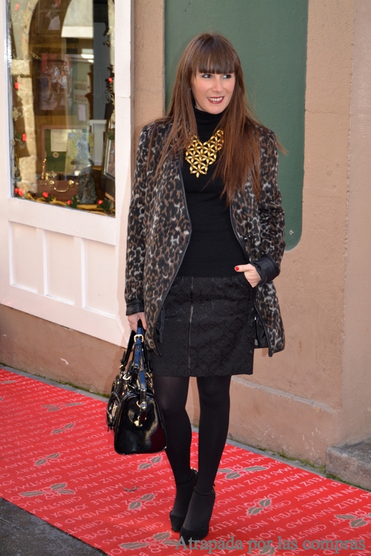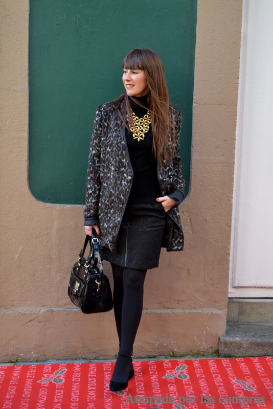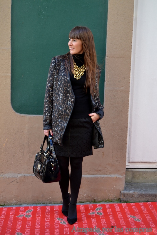 Estas fotos tienen unos días, cuando aún se podía ir sin medias, ahora es impensable.... Me gusta mezclar estampados, pero siempre con una prenda comodín lisa de unión para no crear un efecto "too much". En el look de hoy mezclo dos de mis estampados favoritos, por un lado una blusa de topos y por otro bolso y zapatos animal print, como prenda comodín una falda skater negra efecto piel. ...