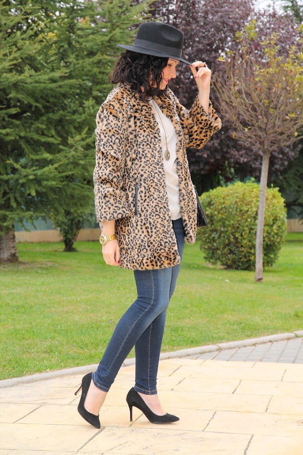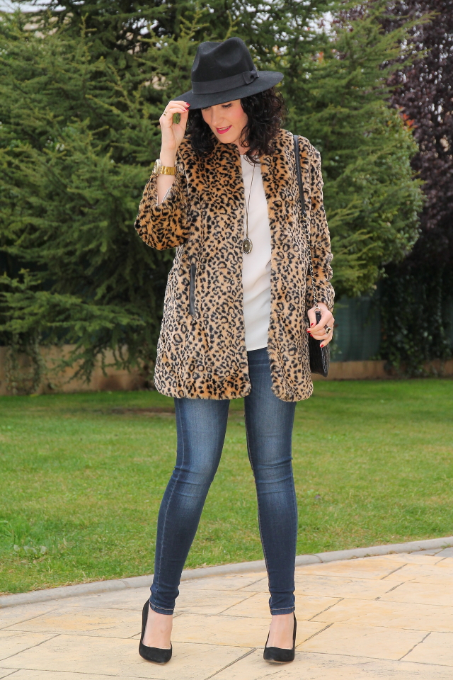 Pero que frío estamos teniendo últimamente, además por mi zona viene acompañado de la niebla casi todos los días así que toca salir de casa bien abrigado. Estos días lo mejor para ir bien caliente son los abrigos peludos como el que llevo hoy con animal print. En cuanto al sombrero, desde que me compré este, que fue el primero, me he enganchado totalmente a ellos, quedan súper estilosos y lo caliente que vas con ellos.
