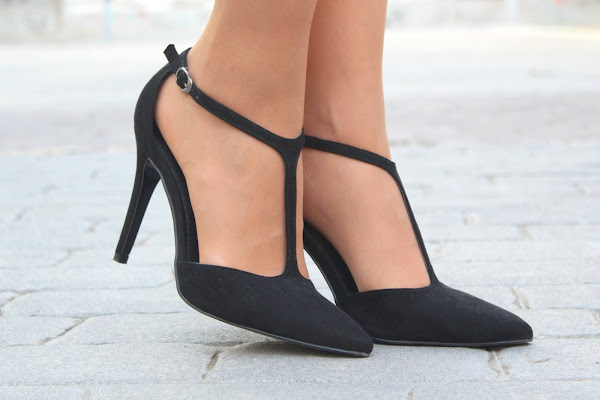 Hoy os lo presento con una camiseta básica blanca, mi nueva falda con tirantes de SHEIN, y mi nuevo bolso y stilettos de CAROLINA BOIX!