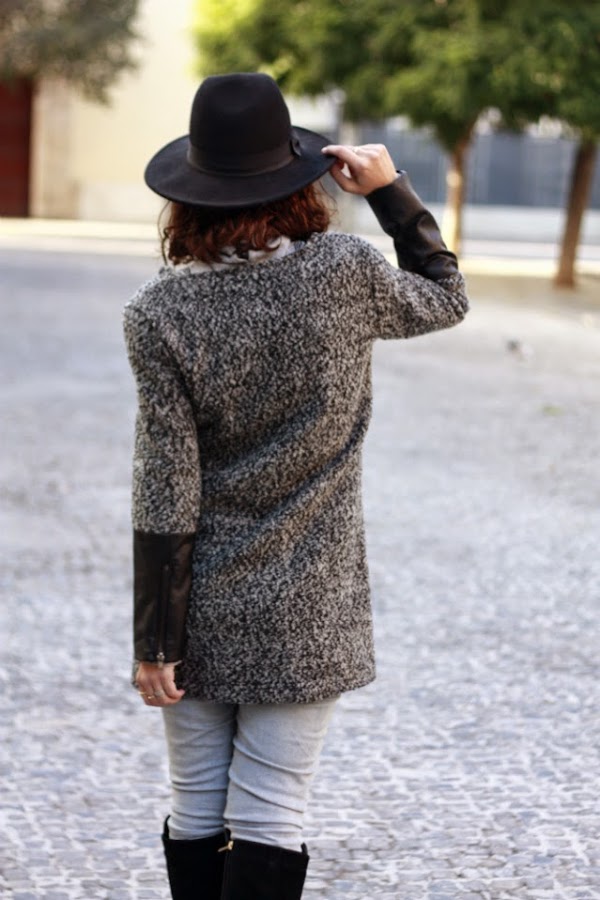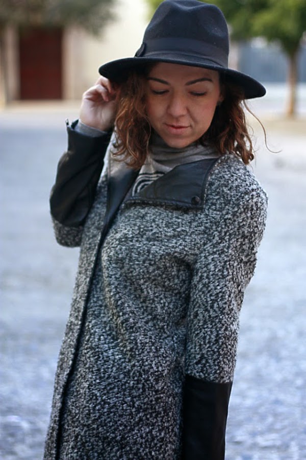Desde que hace unos años se pusieran de moda las gabardinas, cazadoras y abrigos combinados con mangas de cuero o polipiel, me ha gustado este tipo de prendas. En su día me parecieron originales, divertidos y con ese toque desenfadado moderno y algo rockero que a mi tanto me gusta y aún a fecha de hoy me lo siguen pareciendo, por eso, cuando se me rompió mi trench clon de Burberry , tuve la necesidad de renovarlo, pero claro, quería uno diferente y este gris jaspeado me pareció perfecto.