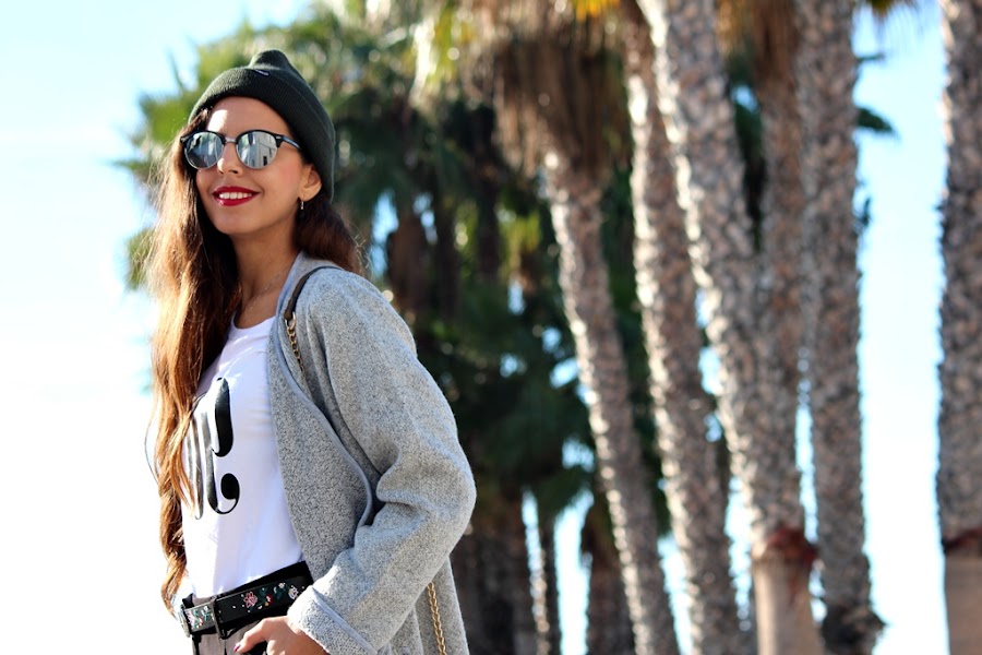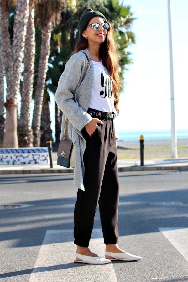 Llevo pantalones de pinzas de stradivarius, son muy cómodos. Camiseta manga corta de Rosegal, es 100% Algodón y me encanta. El gorro es de Pull and Bear. Abrigo Gris de Romwe es talla única pero sirve tanto para un S como una L, En el puño viene un dobladillo y le da ese toque informal al look.