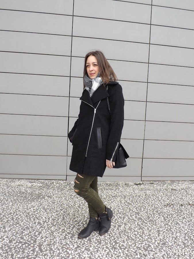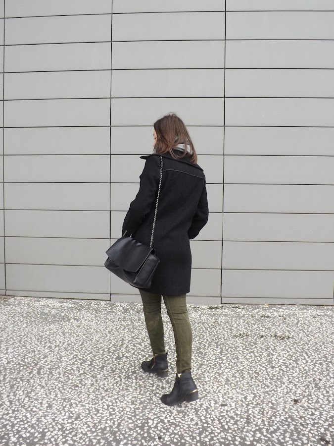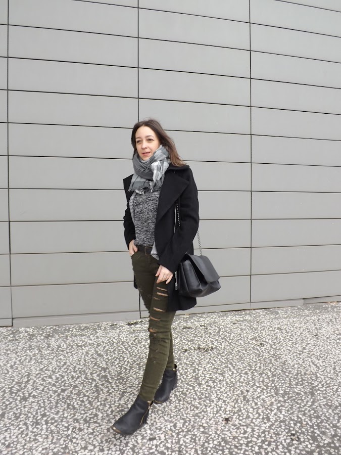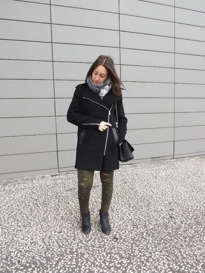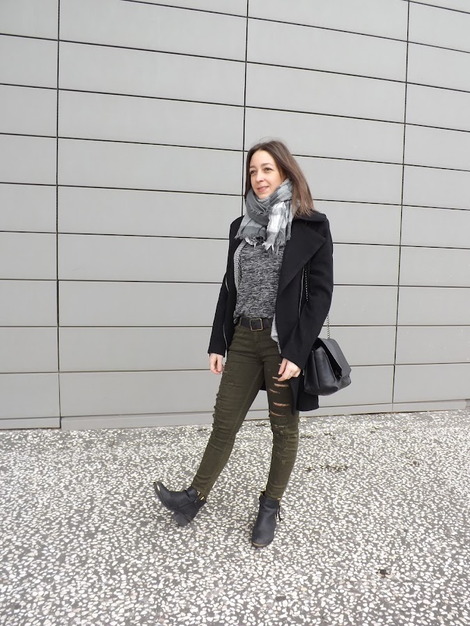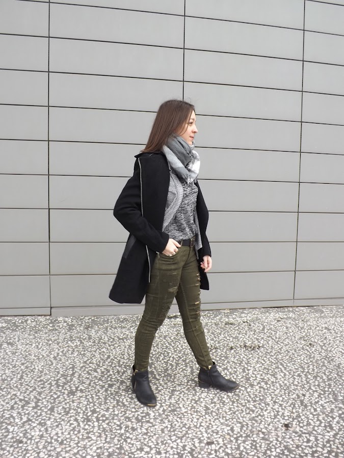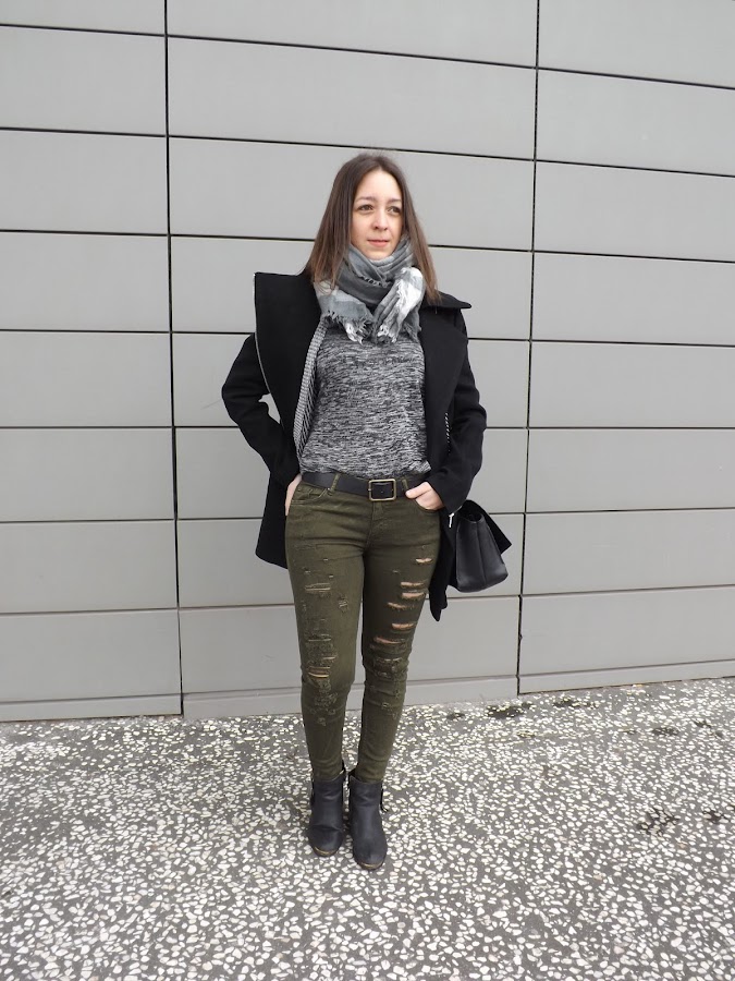 Tocaba renovar abrigo negro y me lo regalaron para mi cumpleaños. También aproveché en rebajas para renovar los jeans verdes, así que hoy un look lleno de nuevos básicos ;)
