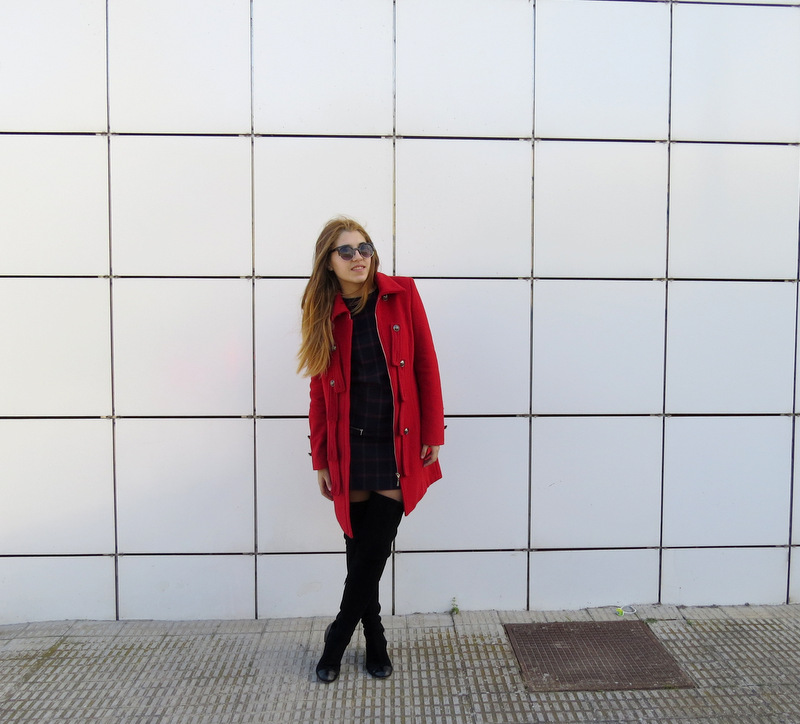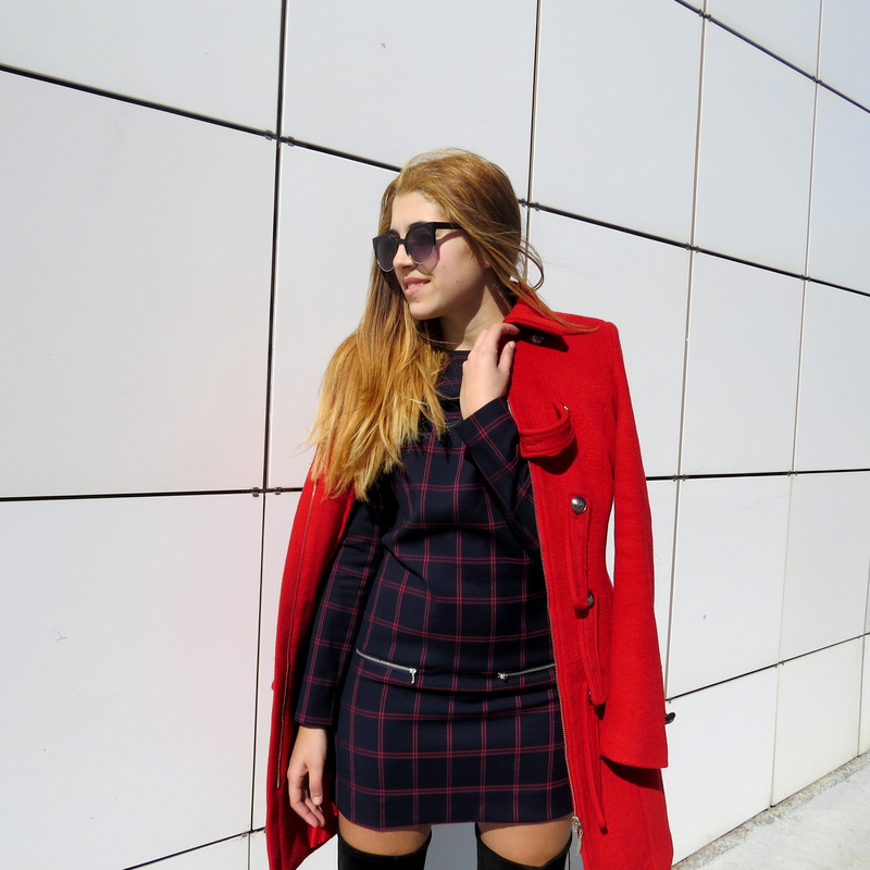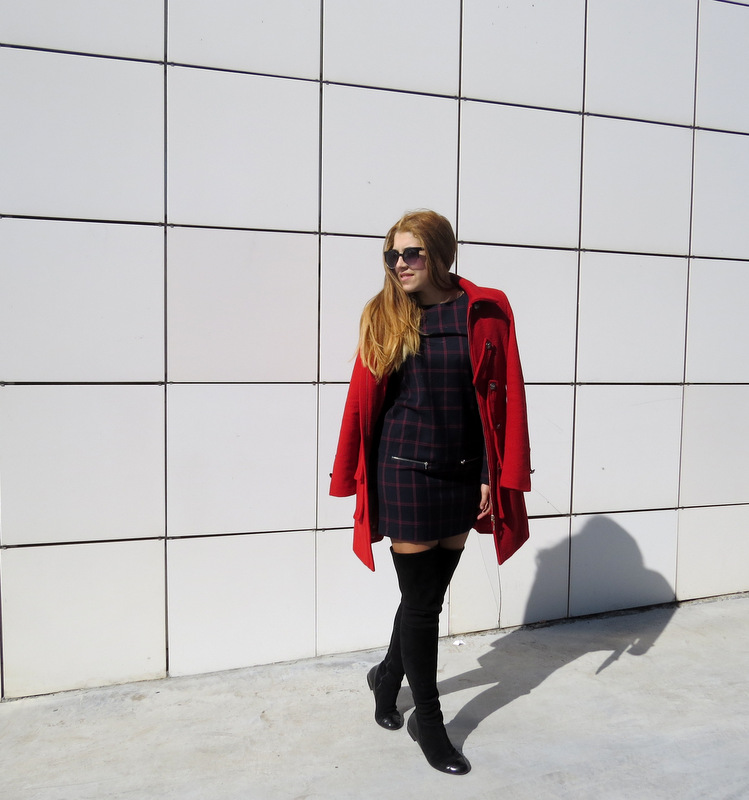 Hoy os enseño un total look muy sencillo, con el color rojo de protagonista y el vestido que me tiene enamorada a cuadros. Enamorada de que esta tendencia este tan de moda, ya que me encanta el print de cuadros. Llevo mis botas overknee Hakei, que una vez más no fallan y son comodisimas. Y para finalizar, mi mejor amigo (en estos días tan frescos), el abrigo que no me quito jamas. Mira que tengo abrigos, pero el siempre gana.