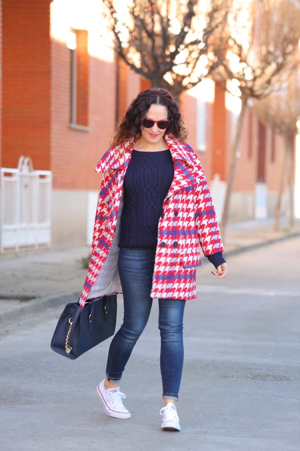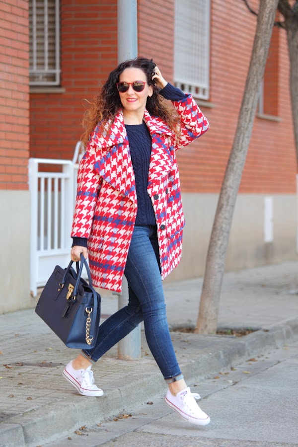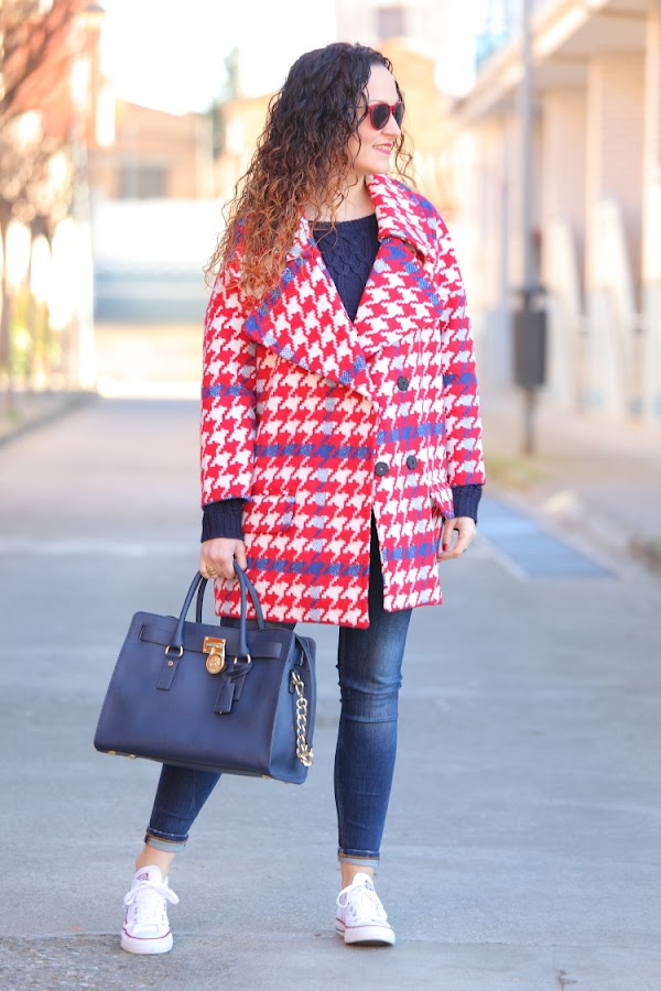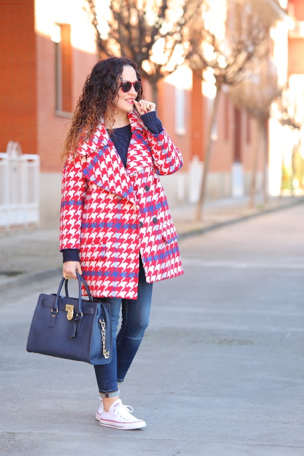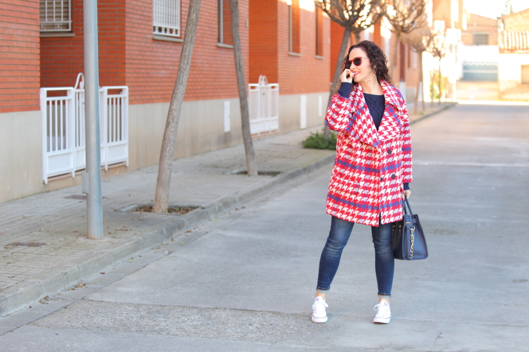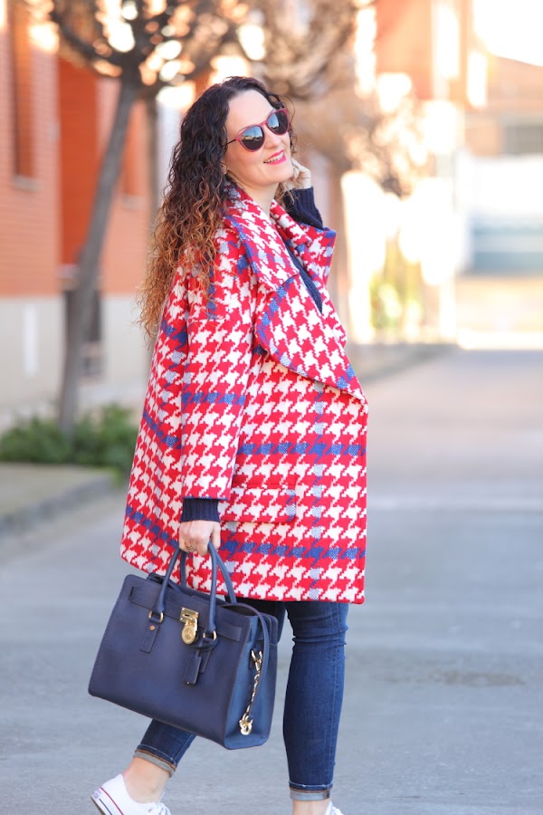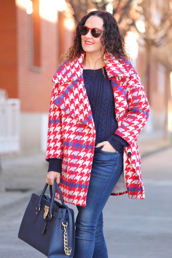 Este año lo mío con los abrigos está siendo una autentica locura. Yo creo que como por mi zona hace tanto frío, solo pienso en como puedo ir bien caliente llevándome a comprar abrigos sin parar. Los he comprado de todas las formas, estilos, colores y estampados, pero hasta la fecha mi preferido sin duda es el que os enseño hoy. Ya sabéis que la pata de gallo me chifla, por eso cuando vi este abrigo con pata de gallo en tonos rojos y blancos me enamoré de él al instante. Llama bastante la atención y la verdad es que cada vez que me lo he puesto alguna persona se ha acercado para preguntarme por él.