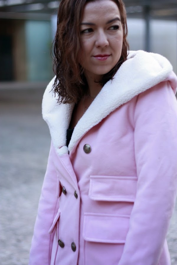 La semana pasada tuve una reunión y aproveché para estrenar este abrigo. Me recuerda a los que llevaba para ir al colegio, podía ser de muchas maneras y tejidos, con capucha, sin capucha, una parla, con pelo en el cuello, con puños de lana, daba igual como fuese, la condición indispensable era que fuese de color rosa. Creo que en plena crisis de treintañera, son estas prendas o estos detalles que me recuerdan a mi infancia, los que más me llaman la atención.Os dejo algunas fotos, por cierto, como la mayoría con estos tiempos locos llevaba un resfriado considerable y sí, el pelo medio mojado, pero la cosa no fue a más. ¡espero que os gusten!