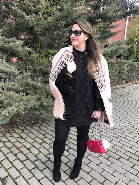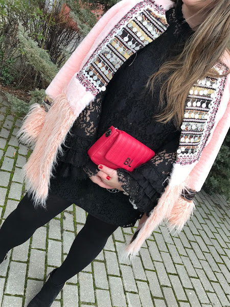 El look de hoy está formado por una camisa de encaje en color negro y falda de piel en el mismo color. El abrigo fue un flechazo a primera vista. No me pude resistir a el nada mas verlo en el escaparate de El Ratoncito Pérez moda y tenía que ser mío como ya os dije en un post anterior.