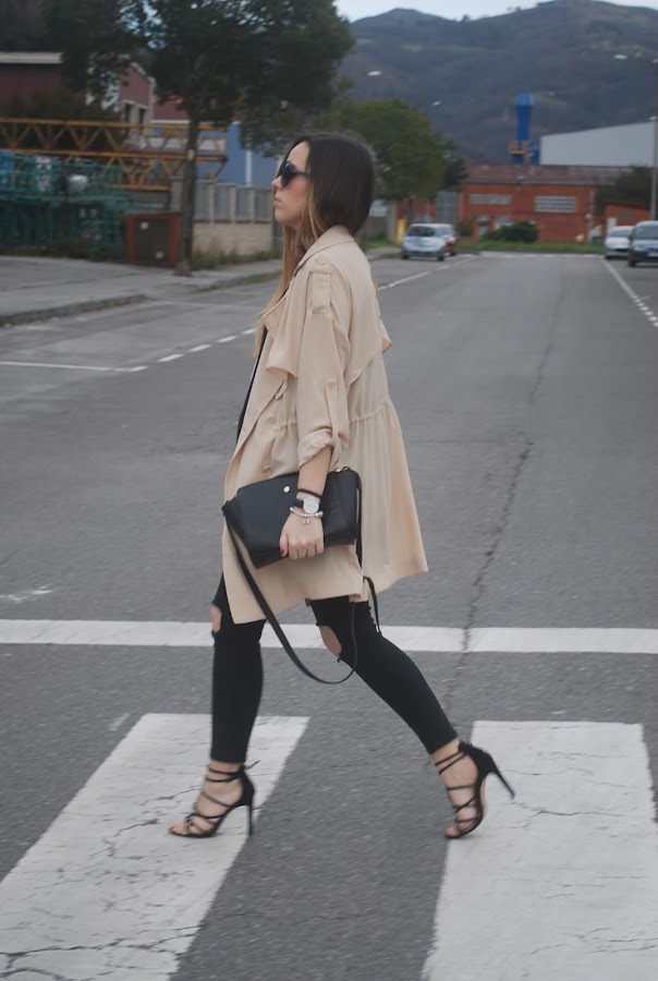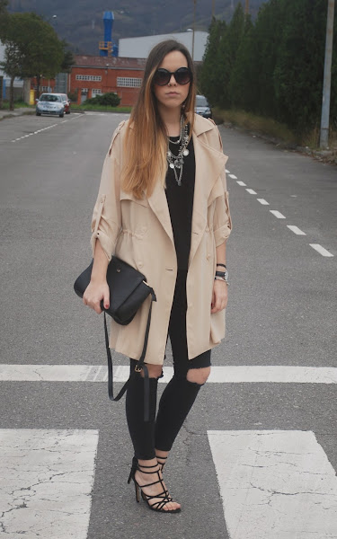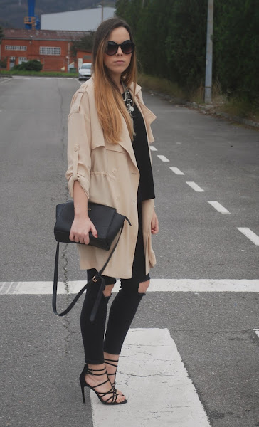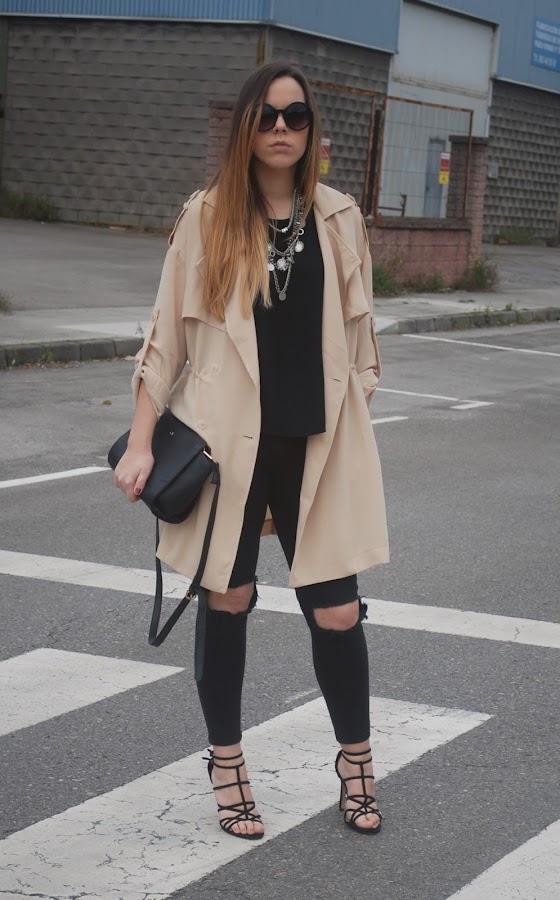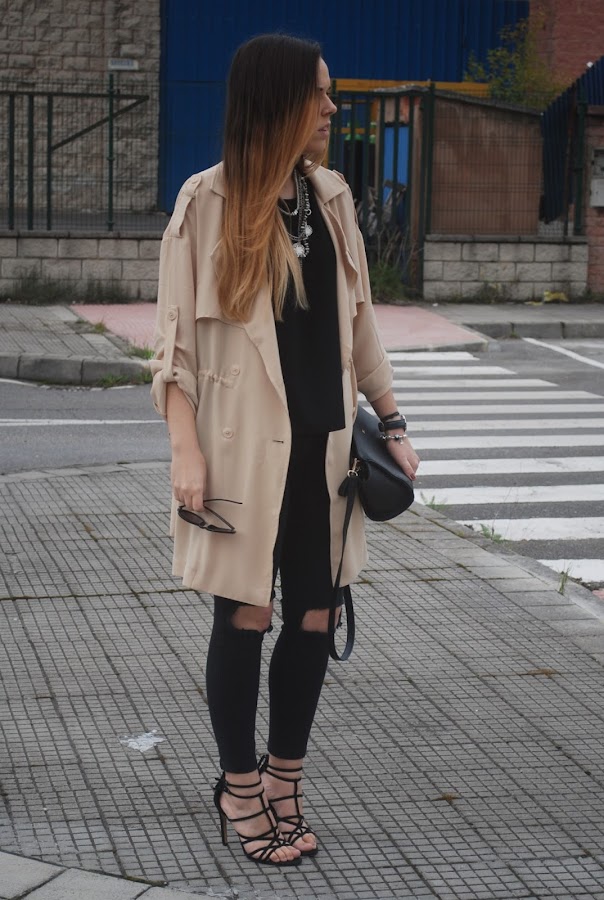 Como no, hoy toca otro total black, pero esta vez con otra de mis compras en Madrid. Una preciosa gabardina oversize en color camel que me tiene loquísima.