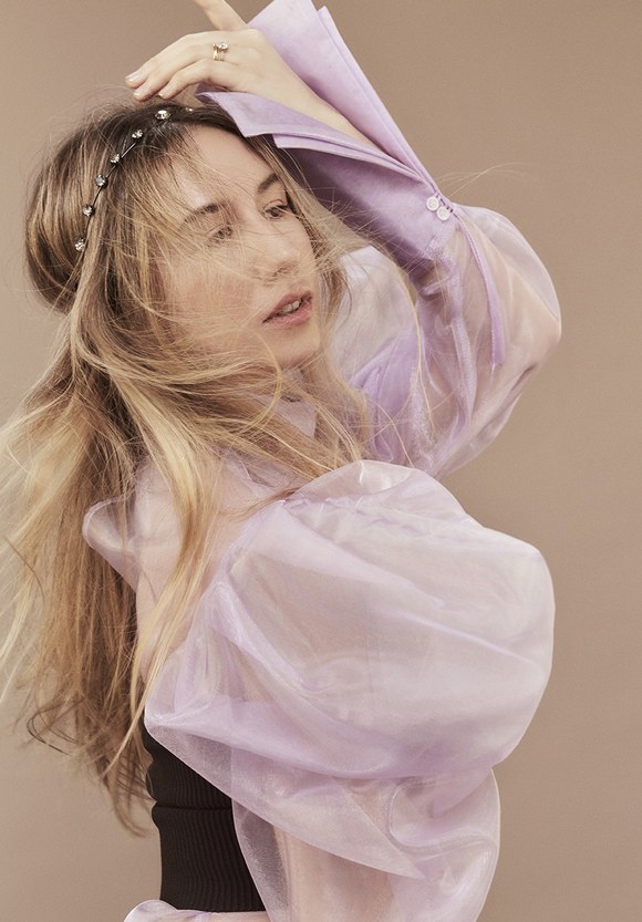 Top, Orla Kiely; Tiara, Jennifer Behr; Anillos Wwake
