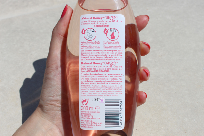 Este aceite de ducha Natural Honey Oil&Go se usa de la siguiente manera:
