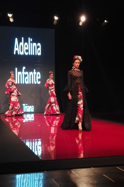 Su colección se inspira en Triana, ese barrio sevillano en el que da gusto perderse, con sus rinconcitos de ensueño y sus edificios con encanto que te roban el alma. Aires canasteros, tonos pasteles además del rojo y el negro, flecos, lunares y volantes, talles altos, mangas voluminosas, faldas fluidas con mucho vuelo y texturas como gasas, algodón, satén, georgette o seda, uniendo lo clásico y lo moderno con un toque de creatividad, Adelina Infante puso sobre la pasarela de la Huelva Flamenca 2018 un punto de frescura y renovación en la moda flamenca con sus diseños.