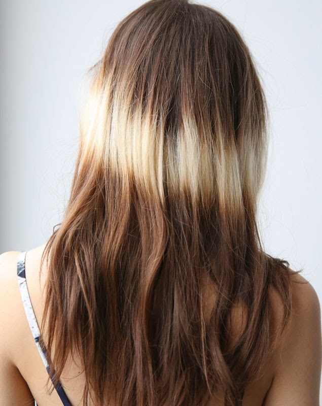 Así visto puede parecer horrible (al menos a mí me lo parece), pero como en el caso de las mechas californianas, el truco está en hacerlo sutil, es decir, que el cambio de tono no sea tan brusco, de forma que realmente parezca que el pelo está iluminado casualmente.