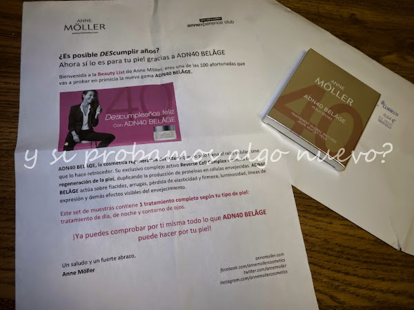 Hace unas semanas recibí un pack de muestras de la nueva crema ADN40 Belâge de Anne Möller. Son tres muestras, una es la crema regenerativa para pieles secas, otra igual pero de noche y un sérum para ojos. Las conseguí por una promoción en su página de facebook.