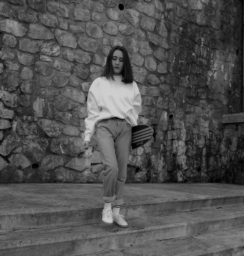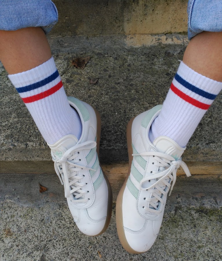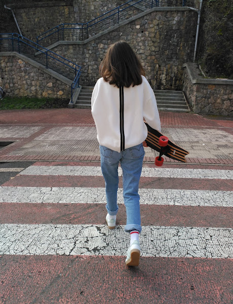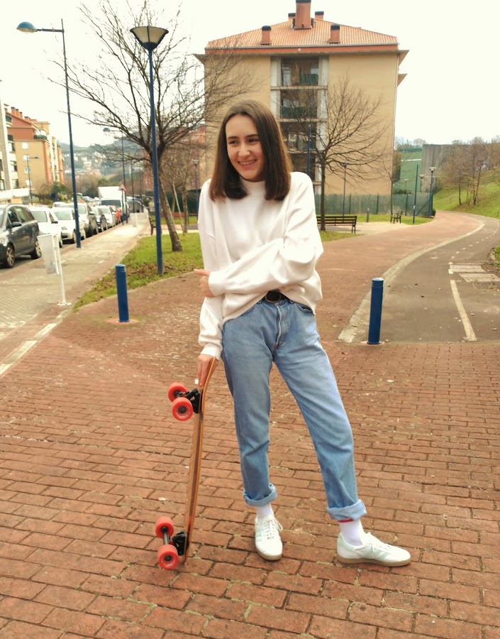 Para el estilo que vestían los jóvenes en los 80 he cogido unas adidas vintage, calcetines vintage, Levis vintage (que pertenecían a los viajes a London de mi padre) y el jersey blanco del que tan enamorada estoy.