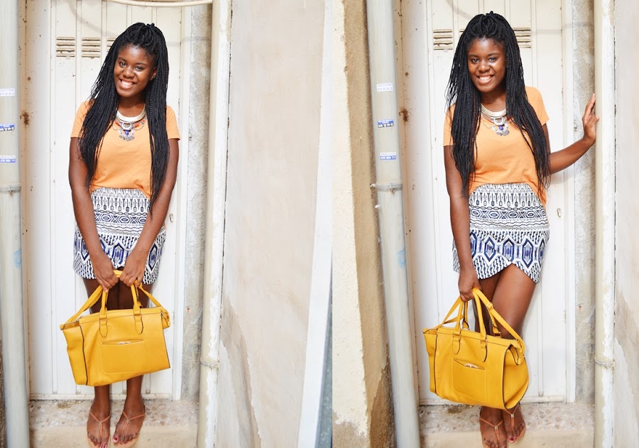 Falda: Cortefiel / Camiseta básica: Zara (old) / Collar: Stradivarius (SALES)/ Sandalias y Bolso: Primark