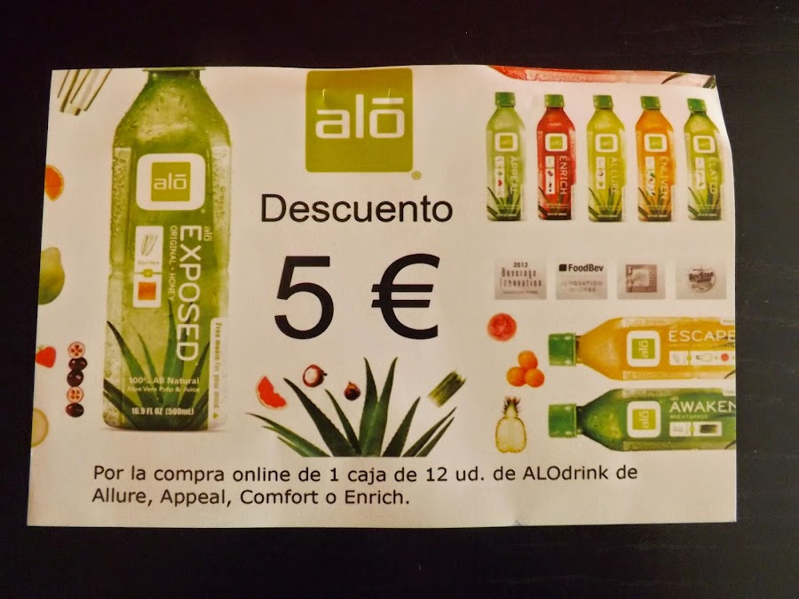Como véis, también han incluído un descuento de 5 euros por la compra online de 1 caja ( 12 unidades) de ALOdrink Allure, Appeal, Comfort yEnrich.