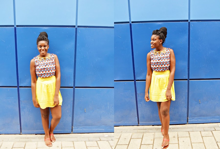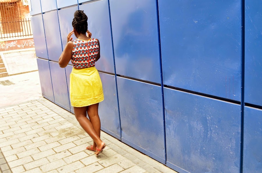(Y las fotos quedaron rarísimas) pero yo no puedo dejar de ponerme cosas de color, es algo que me define mucho. Ya os enseñé este crop top ( AQUI) y esta vez lo combiné con mi falda amarilla para seguir con los tonos del crop top.¿Os gusta?