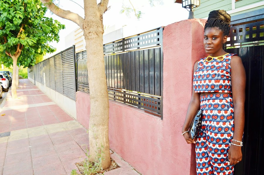 Un conjunto que me hicieron a medida en Malabo ( Guinea Ecuatorial) , un gran diseñador ...Mohamed, que ganó la fashion week de Guinea el año pasado. Yo ya sabía que conjuntos quería hacerme antes de irme , solo faltaba encontrar la tela correcta . Siempre me gustaron las telas y ropas africanas y es que apesar de no haber nacido en Guinea , la tierra y la sangre tiran. Sé que es super colorido , y seguro que muchas ni os lo pondriais pero es que a mi me gusta tantoooo llevar coloor :) Además le voy a sacar mucho partido tanto en conjunto como cada prenda por separado.