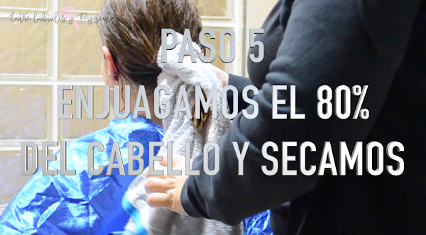 5-Enjuagamos el 80% del cabello y secamos con el secador al 100%