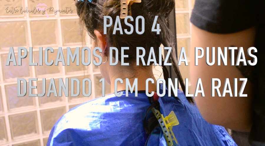 Aplicar con una paletina dejando 1 o 2 cm de distancia con la raiz del cabello.