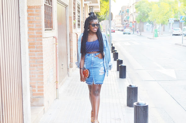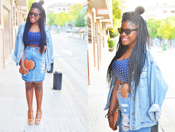 En cuanto al outfit que utilicé fue esta preciosa falda vaquera (llevaba mil buscando una y mi querida amiga Ana me la regaló por mi cumpleaños), crop top , chaqueta vaquera oversize y que no falte mi querdio clutch de galleta.