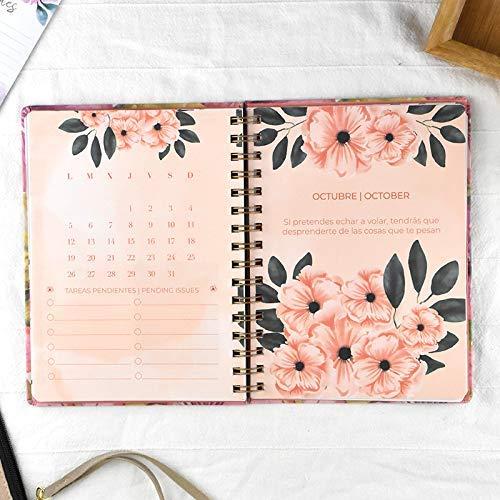 Incluye planificador mensual y páginas de organización al inicio de cada mes, pegatinas, cierre elástico de alta gama y bolsillo porta documentos impreso.