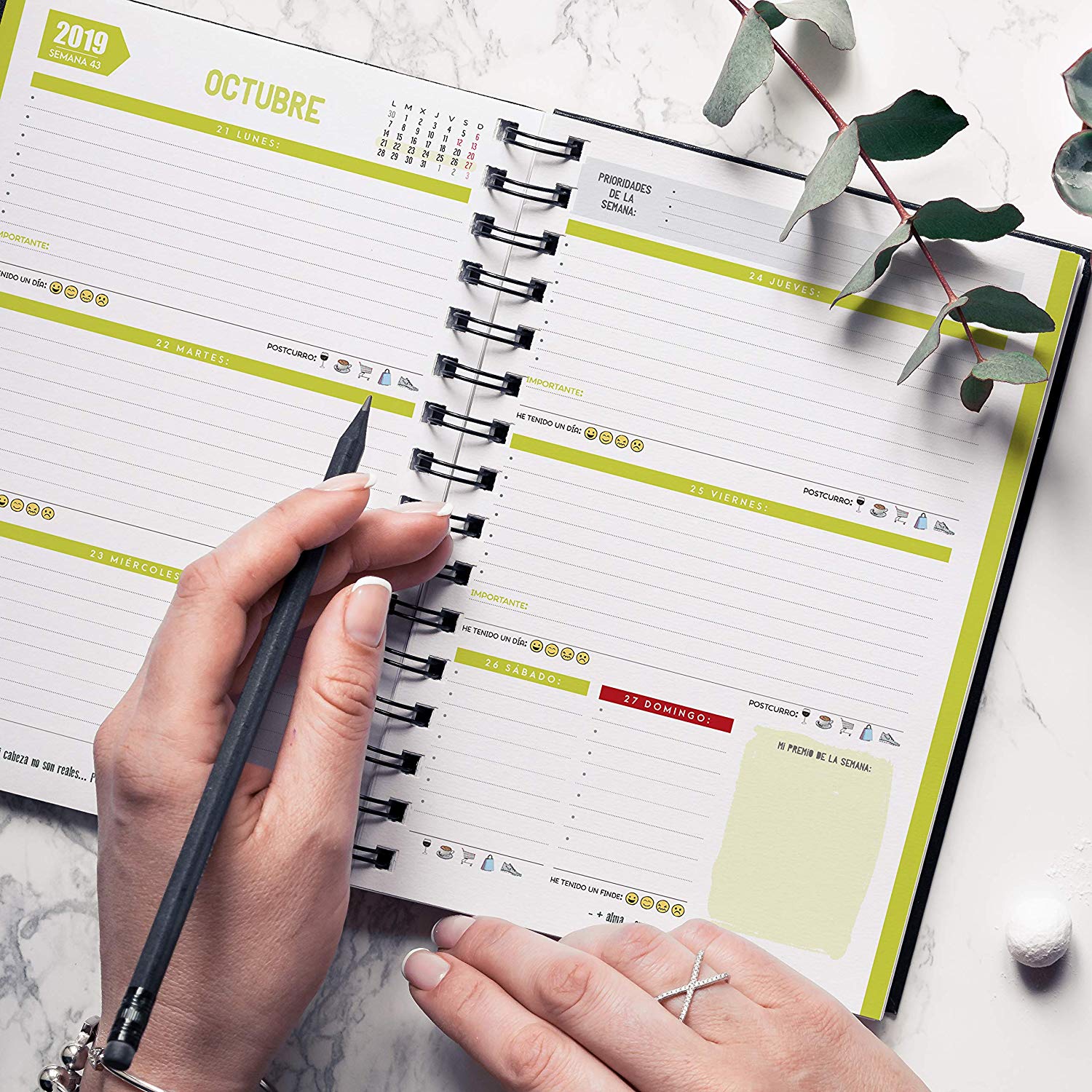 Necesito que sea semana vista, porque me mantengo muy al día de lo que tengo que hacer. Las clases de marketing o blogging, las visitas a clientes, los proyectos… Todo lo necesito hiper ordenado para llegar.