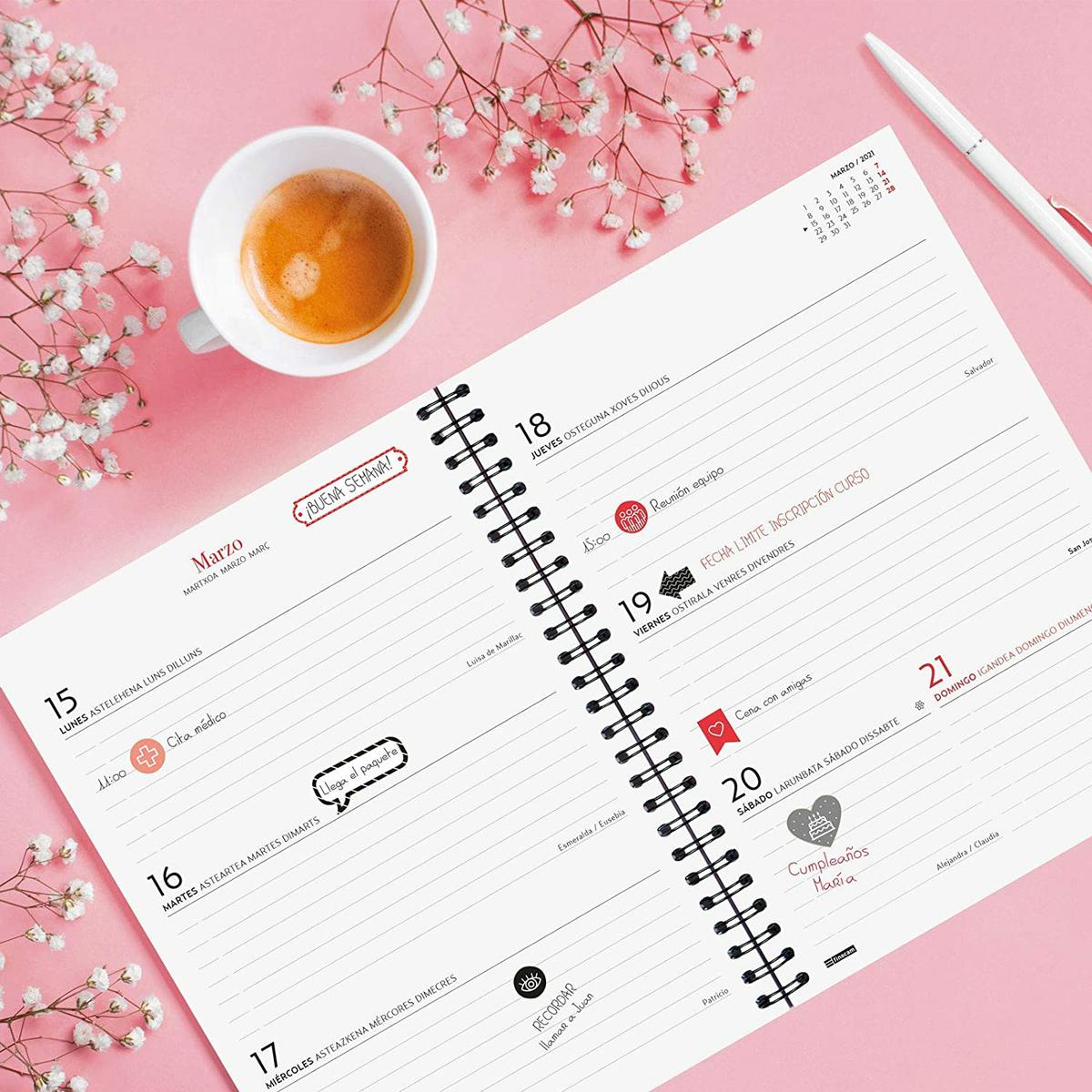 Esta agenda escolar 2021 de Quijote Paper World es sencilla, bonita y práctica. Con anilla y día vista.
