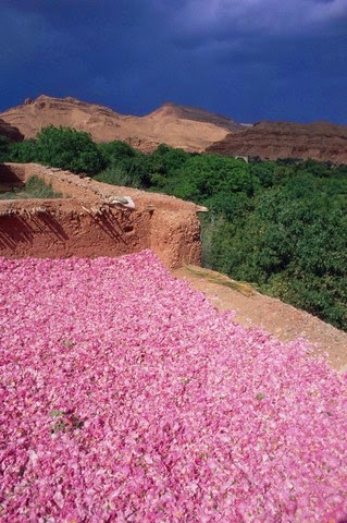 Proveniente de la región del maravilloso y verdoso Valle de Dades-Ouarzazate,el Kelaat Mgouna en Marruecos,pueblo situado a 1500 m de altitud,es astringente,tonifica la piel,contribuye a regenerar la piel,es refrescante y reduce las rojeces.
