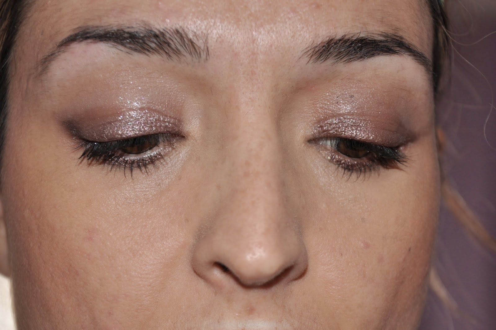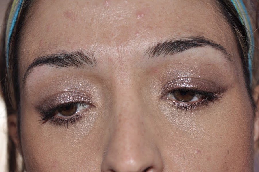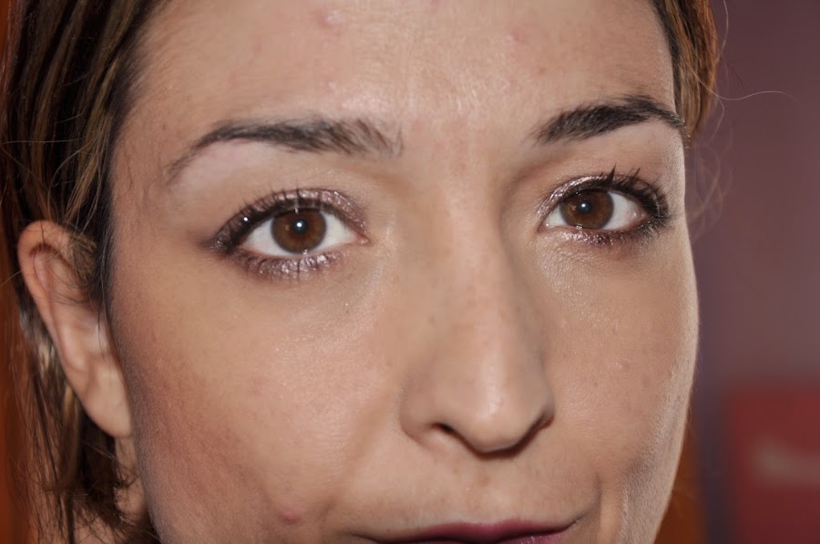 Para acabar os dejo con unas fotos del "paso a paso" de ojos usando el long lasting 05 tanto en el párpado móvil como a ras de pestañas inferiores,y con una pequeña transición en la cuenca con la sombra naked de la paleta naked 1.La máscara de pestañas es la Maxi volúmen.