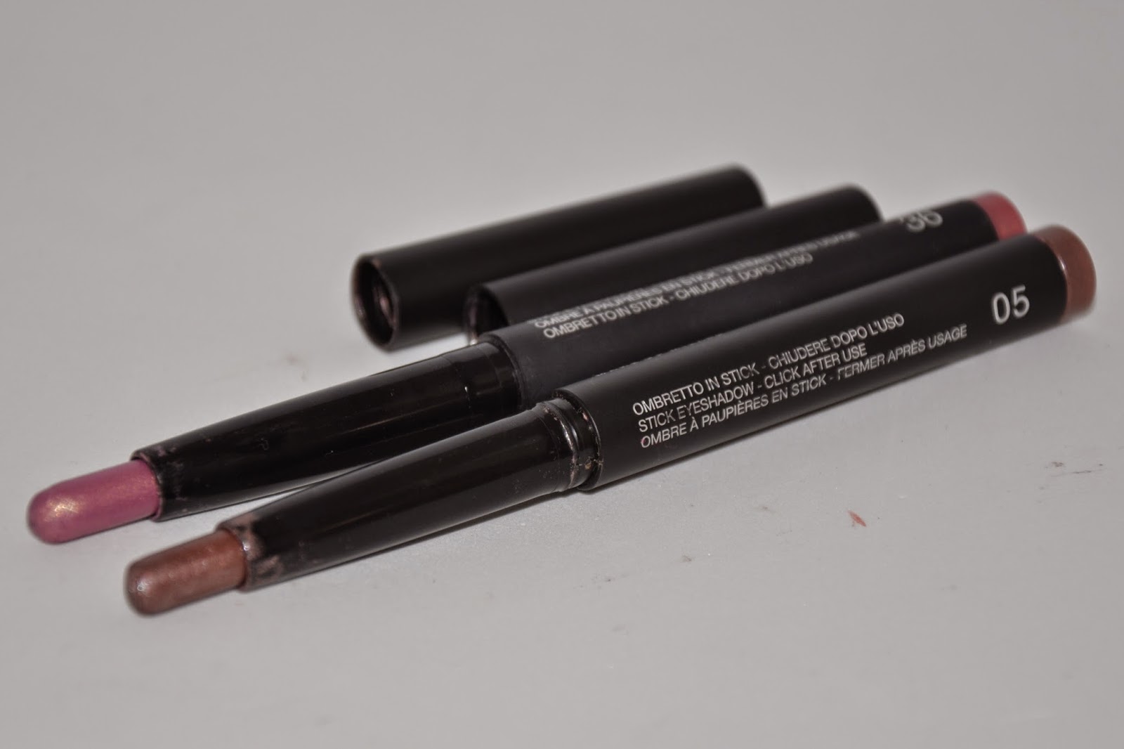 Debajo los "long lasting" de Kiko números 05 y 36 igualmente son sombras muy faciles de aplicar y además su duración es bastante buena.