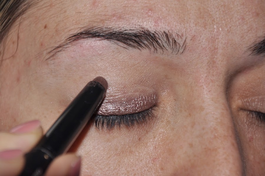 Voy alternando entre un paint pot de Mac (suele ser el "painterly") o esta mini talla que me venía con la paleta "Naked" de Urban Decay.