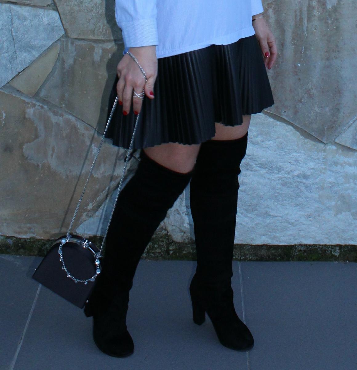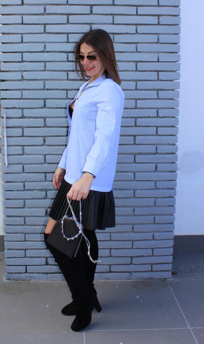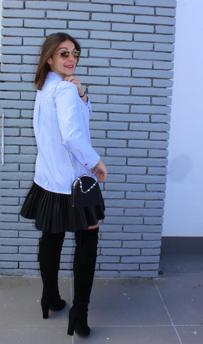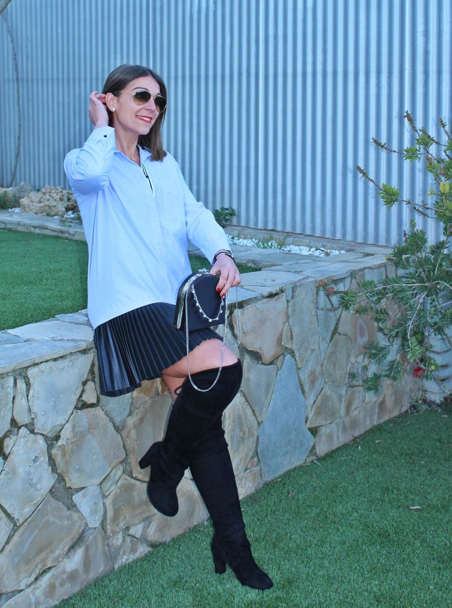 Un look muy juvenil y desenfadado, combinado con botas por encima de la rodilla y bolsito joya. La verdad es que el día acompañaba y lucia un sol maravilloso para ir estrenando las nuevas adquisiciones de la temporada a las que le tenemos tantas ganas.