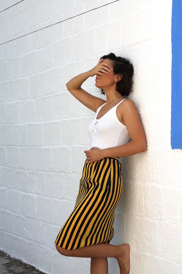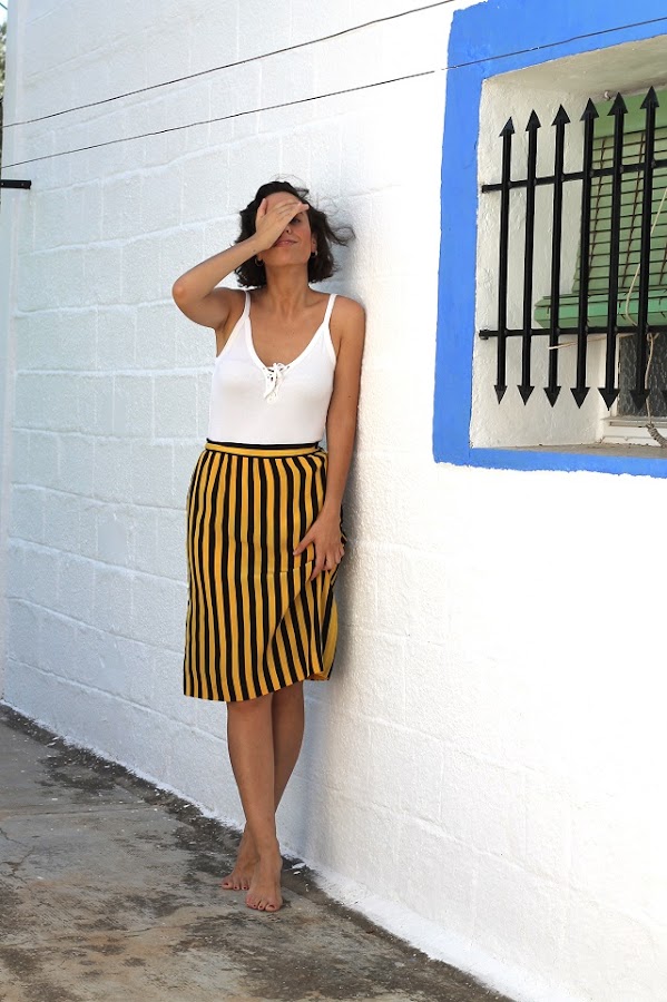 Llevo body Double Agent blanco con lazada, pendientes de PdPaola, y falda vintage. Todo todito de Dorado Vintage.