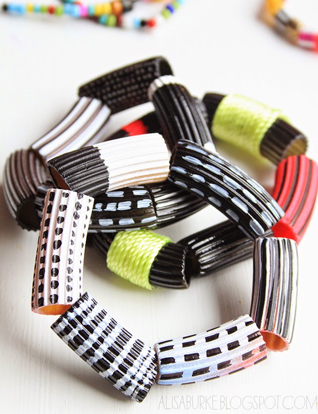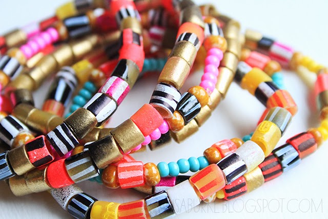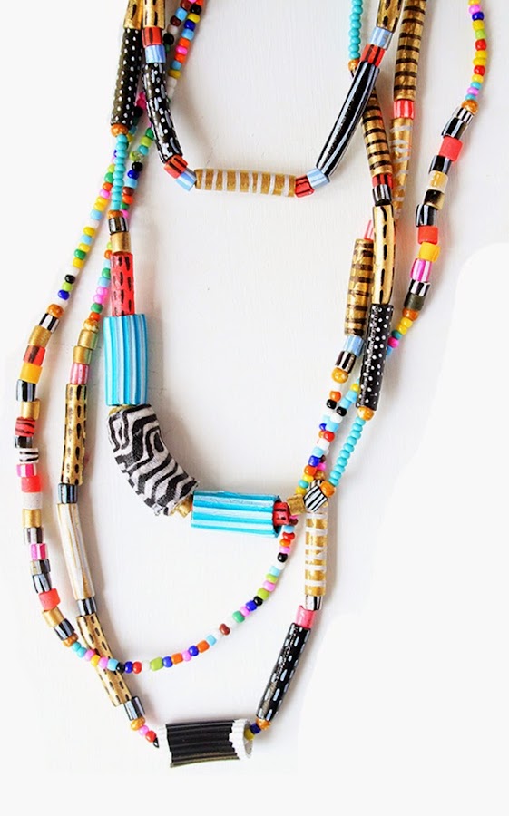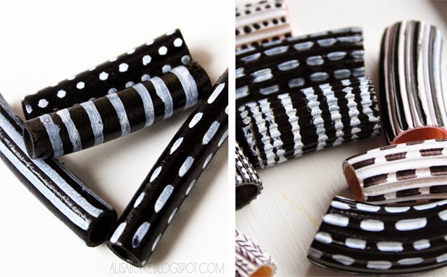 Ultimamente apuesto por las manualidades fáciles, con materiales baratos y sencillos de conseguir. Hace ya un tiempo os mostré un tutorial para realizar collares con pasta para niños, hoy os traigo unas ideas para hacer collares con pasta para nosotras o para regalar. Tan solo tenemos que pintar, con la ayuda de spray y pinceles, pasta de distintas formas en diferentes colores y dibujos, con puntos, rayas verticales u horizontales, a bandas.....imaginación al poder. Si quieres que sea mas original tu collar, añade pequeñas cuentas de colores, el resultado será precioso. Te dejo unas cuantas imágenes para que te sirvan de inspiración.