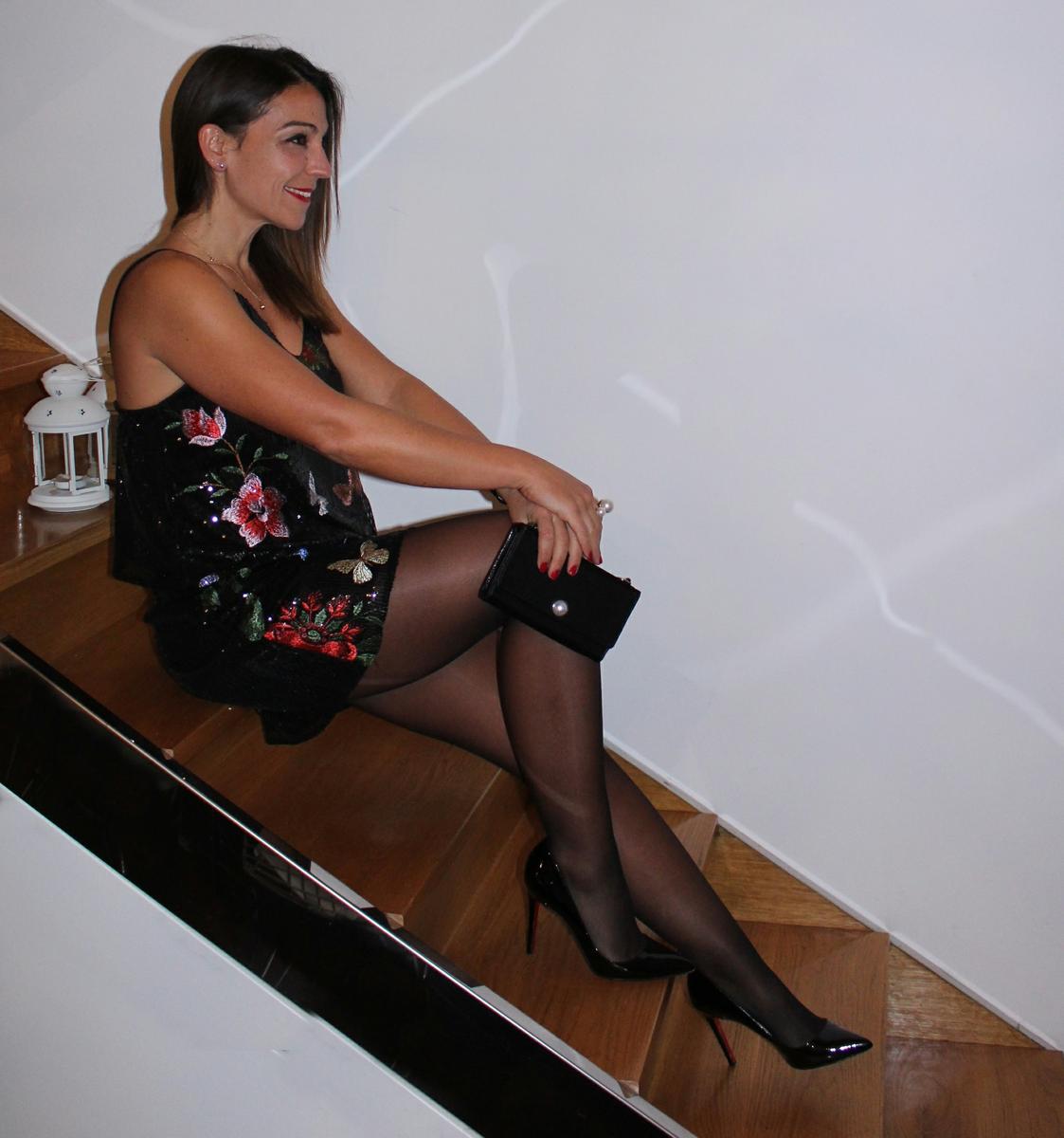 El look de hoy está compuesto por un dos piezas de la marca SHEIN, minifalda y top con base de lentejuelas negra muy pequeñitas y salpicado con bonitos bordados florales y numerosas mariposas revoloteando. La verdad es que es un conjunto muy bonito y vistoso, aunque a primera vista parece muy llamativo, son piezas que por separado pueden darnos también mucho juego. Ya que si queremos rebajar el efecto festivo, hay multitud de opciones, como puedes ser combinar el top con un tejano o un pantalón negro, o la falda con una camisa o camiseta. Como siempre os digo a la hora de hacer compras, que es muy importante al invertir en prendas tan especiales como éstas, poder sacarles partido, y os aseguro que este conjunto va a dar mucho juego tanto juntas como por separado.