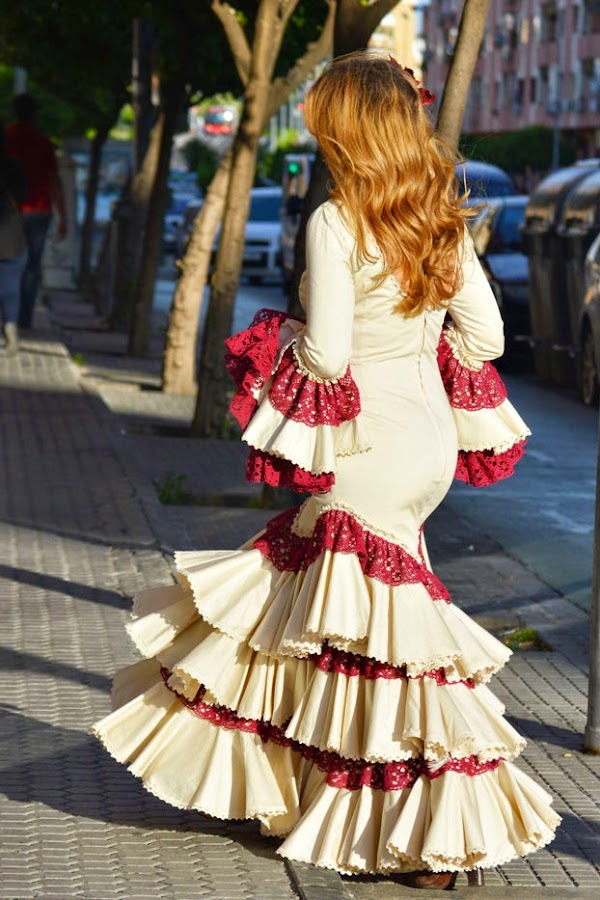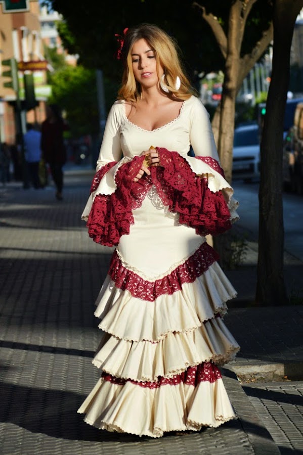 Acaba de terminar la feria de Sevilla y, aprovechando que la semana pasada os enseñaba algunas de mis fotografías de Andalucía, os quería enseñar lo que llevé este año a la feria. El vestido de flamenca favorece a todas las mujeres, realza nuestras curvas y sus volantes enaltecen el movimiento y el baile. El mío se llama Algarabía y lo diseñé yo; sabía que esta vez quería un vestido sencillo y con las mangas largas (muy, muy largas). Para acompañarlo, simplemente unos pendientes plateados y una flor en el pelo. Ya me contaréis qué os parece. Mil besos.