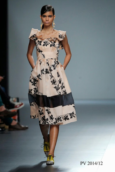 De Victorio & Lucchino me quedo con el concepto de este vestido en sus formas, color y estampado. No sé yo si el volante en el escote le gustaría a Letizia, la verdad, pero es una prenda al que se le pueden sacar bastantes ideas.