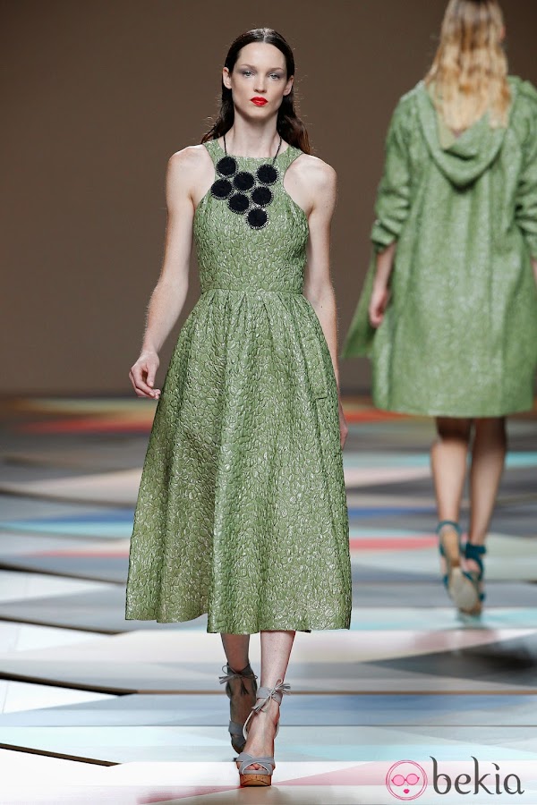 Hace años, la Princesa de Asturias confió las prendas de sus apariciones públicas a Alianto. En su desfile de esta temporada poco o nada he visto que sea acorde al estilo de doña Letizia; quizá este vestido verde (el abrigo a juego se ve al fondo) personalizando algunas cosas.