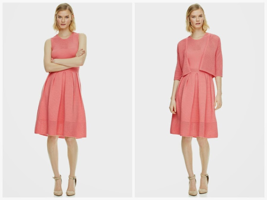 Me gusta mucho este bonito, favorecedor y muy sencillo vestido en rosa de Adolfo Domínguez, al que quizá habría que ponerle algún forro en la falda y hasta hacerlo en otro tejido, con bolero a juego que le da un toque más refinado.