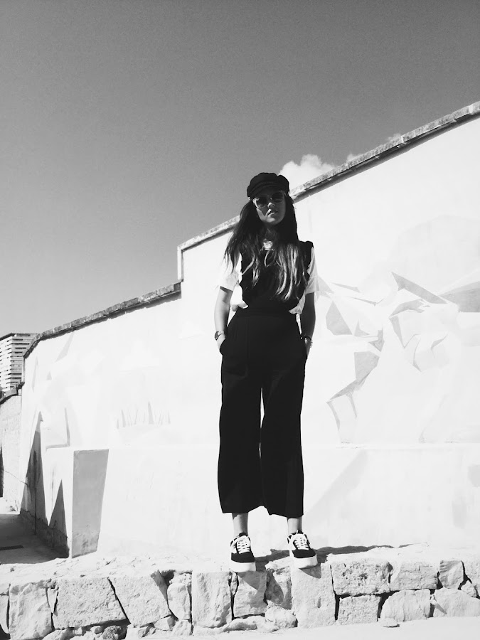 Quería optar por algo formal pero siempre dándole mis toques personales y de ahí fruto esta composición: mono negro de pata ancha y tirantes con detalles de volantes, camiseta lettering y mi más preciadas mustang -no hay quien me las quite de los pies-. Quise darle más juego con la gorra y ahí está el resultado. Estoy tan poco acostumbrada a llevar gorras que se me hace un mundo ¿no os pasa a vosotras? esta al menos me da muchísimo calor, pero me encanta como queda.