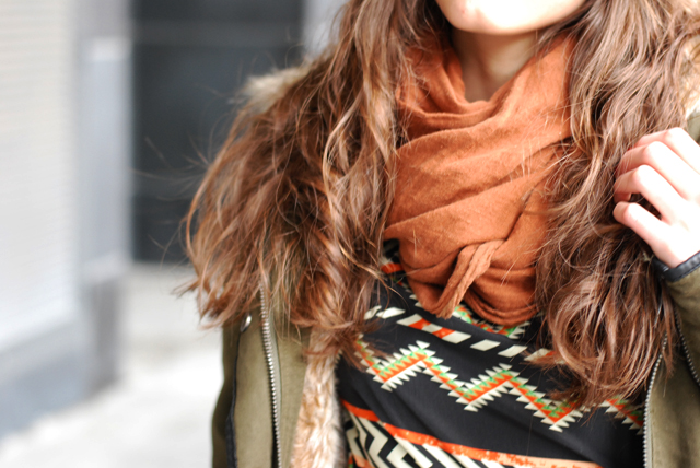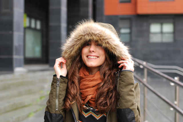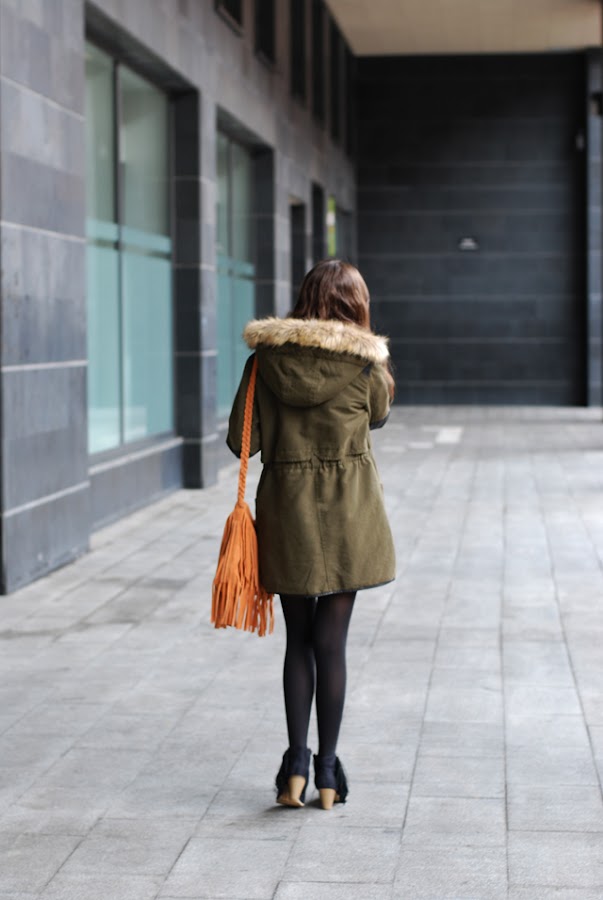 Parka: Zara | Vestido/Dress: AxParis | Pañuelo/Scarf: Pull & Bear