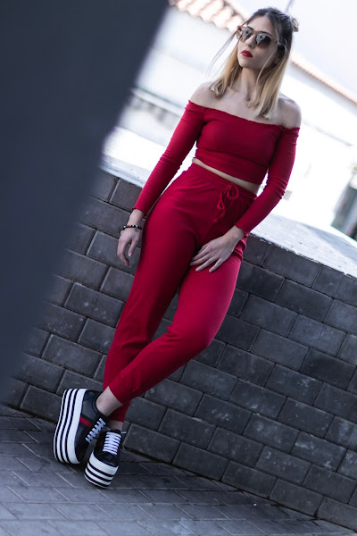 En cuanto al look, hoy os traigo un conjunto de dos piezas de SHEIN, de estilo deportivo y de color rojo. Como me gusta el color rojo!! Es súper cómodo, el top se adapta como un guante y lo que más me gusta es que es de hombros descubiertos. El pantalón es tipo jogger por lo que se queda un pelín anchito pero era justo lo que estaba buscando!