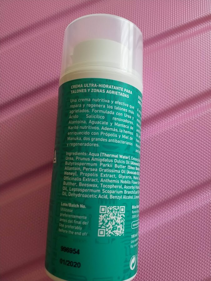 Entre sus ingredientes principales encontramos leche de burra, aguacate y menta! Su textura es densa pero se absorbe estupendamente al aplicarmela en los pies. Con poca cantidad tienes suficiente por lo que cunde muchísimo. Su olor a menta me chifla porque es un olor fresco y limpio, pero es que tras su aplicacion en los pies la sensación de frescor es... Una sensación ideal para cuando vienes cansado de trabajar y necesitar relajar tus pies! Además contiene acido salicilico, manuka y propolis que nos ayuda a proteger nuestros pies de infecciones tales como hongos ¿Que mas se puede pedir? Ah! Y me encanta su envase ya que es practico y me parece una manera muy limpia para coger la crema, pues no tienes que tocar la crema con la mano!