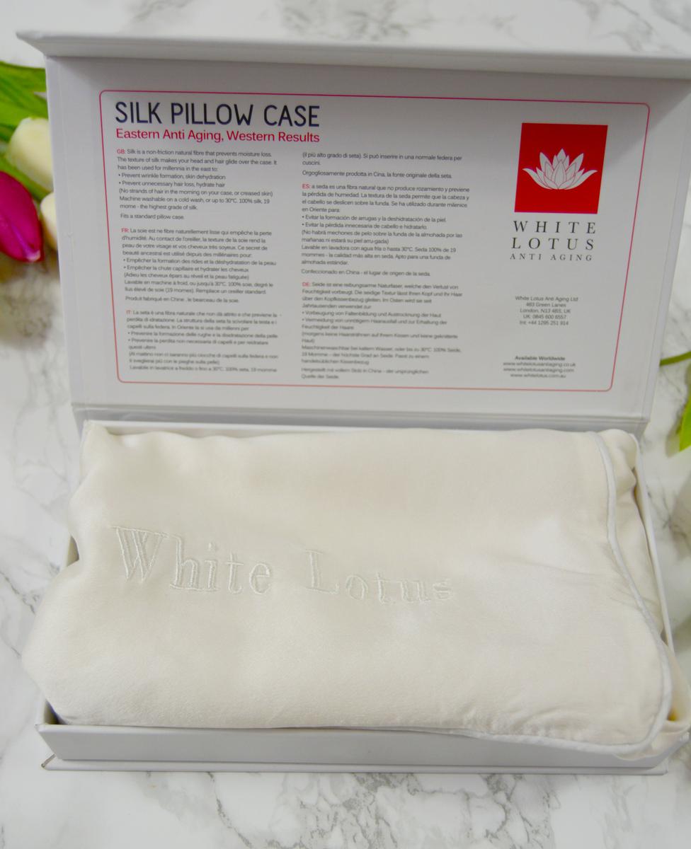 La funda de almohada que yo estoy utilizando es de White Lotus, la podéis encontrar en Amazon. Es 100% seda de 19 mommes y se puede lavar en lavadora con agua fría hasta 30 grados. (Ya la he lavado un par de veces y queda perfecta, recomiendo tenderla en horizontal.)